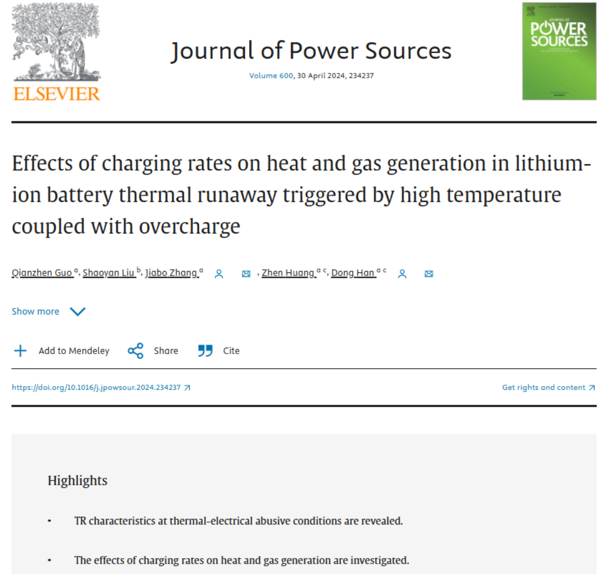 Исследовательская группа профессора Хан Дуна из Шанхайского университета Цзяотун, включая доктора Го Цянь Чжэня, опубликовала статью под названием «Влияние скоростей зарядки на тепло- и газообразование в литий-ионных аккумуляторах при тепловом разгоне, вызванном высокой температурой в сочетании с перезарядом» в журнале Journal of Power Sources. В этом исследовании в качестве основного испытательного прибора использовался  адиабатический калориметр для малых батарей (BAC-90AE)  для изучения влияния различных скоростей зарядки на тепло- и газообразование в литий-ионных аккумуляторах во время теплового разгона, вызванного высокими температурами и условиями перезаряда.
